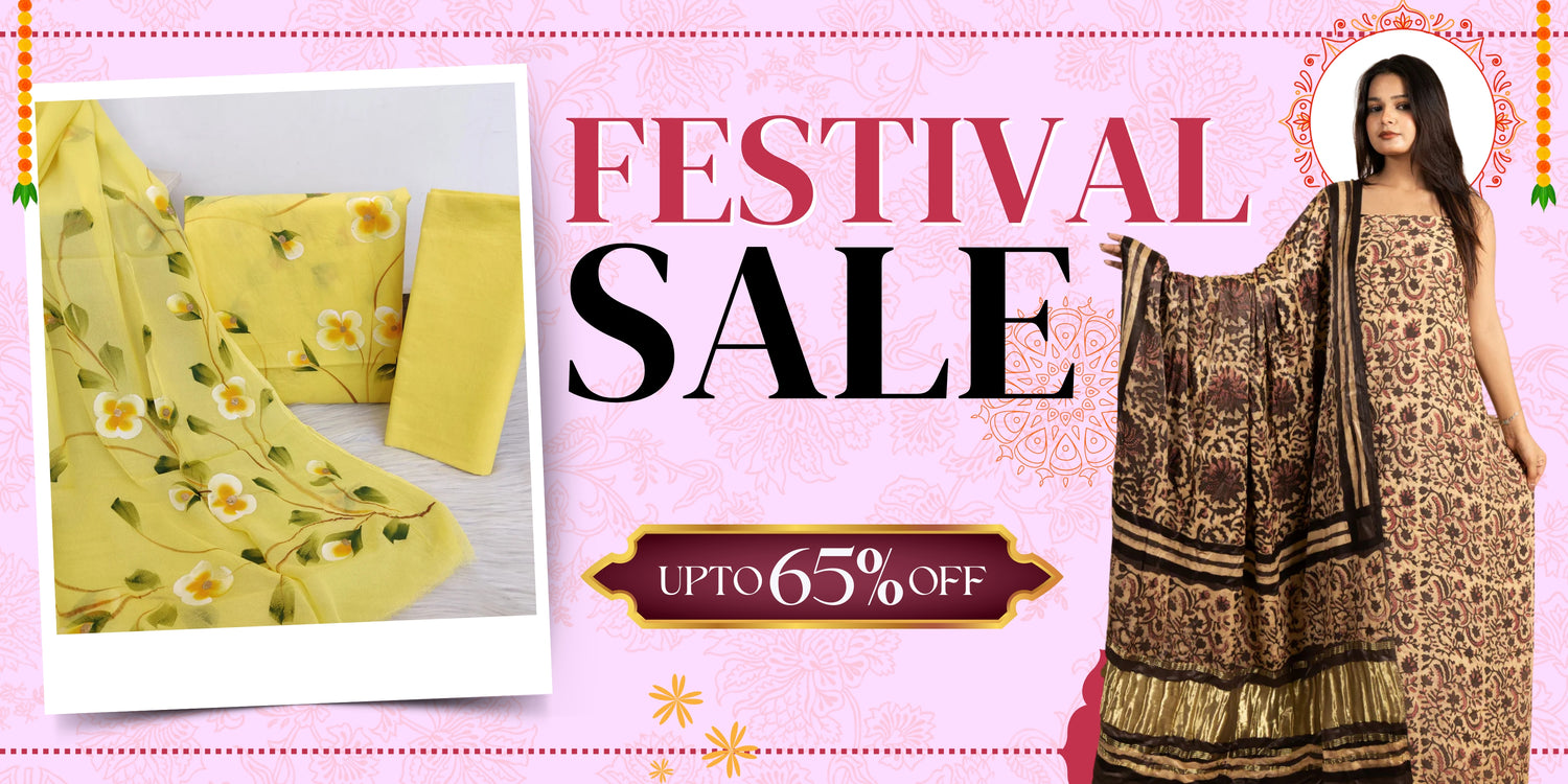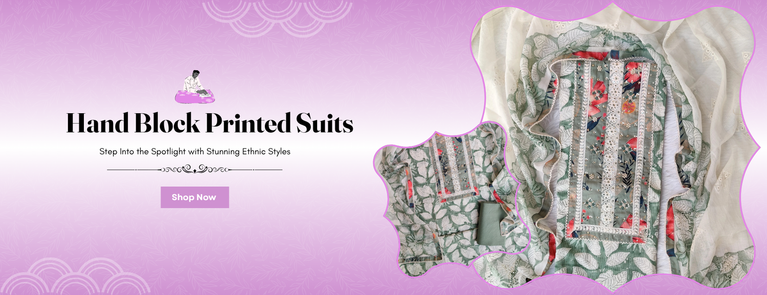 Hand Block Printed Cotton Suits with Mulmul Bandhej Dupatta