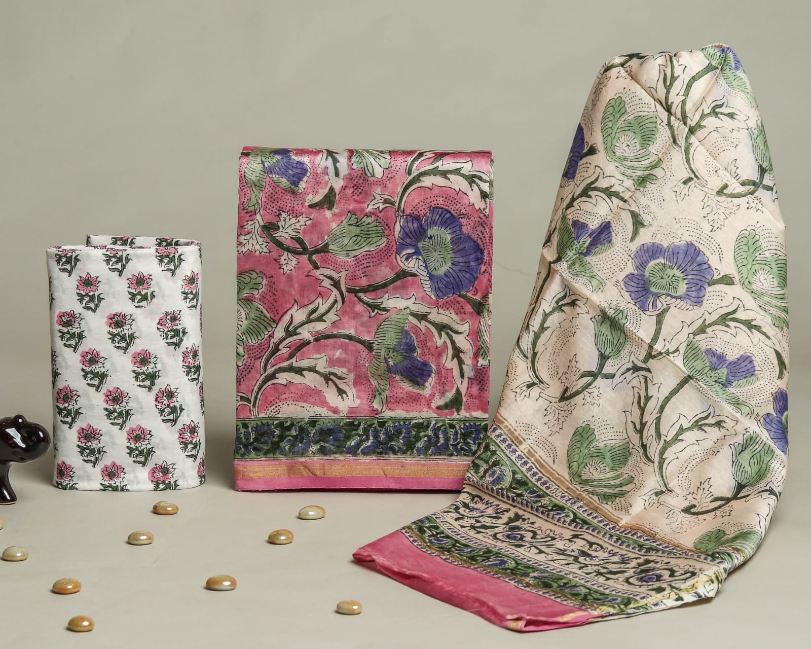 - Bottom: Cotton hand Block Printed (2.5 Mtr)