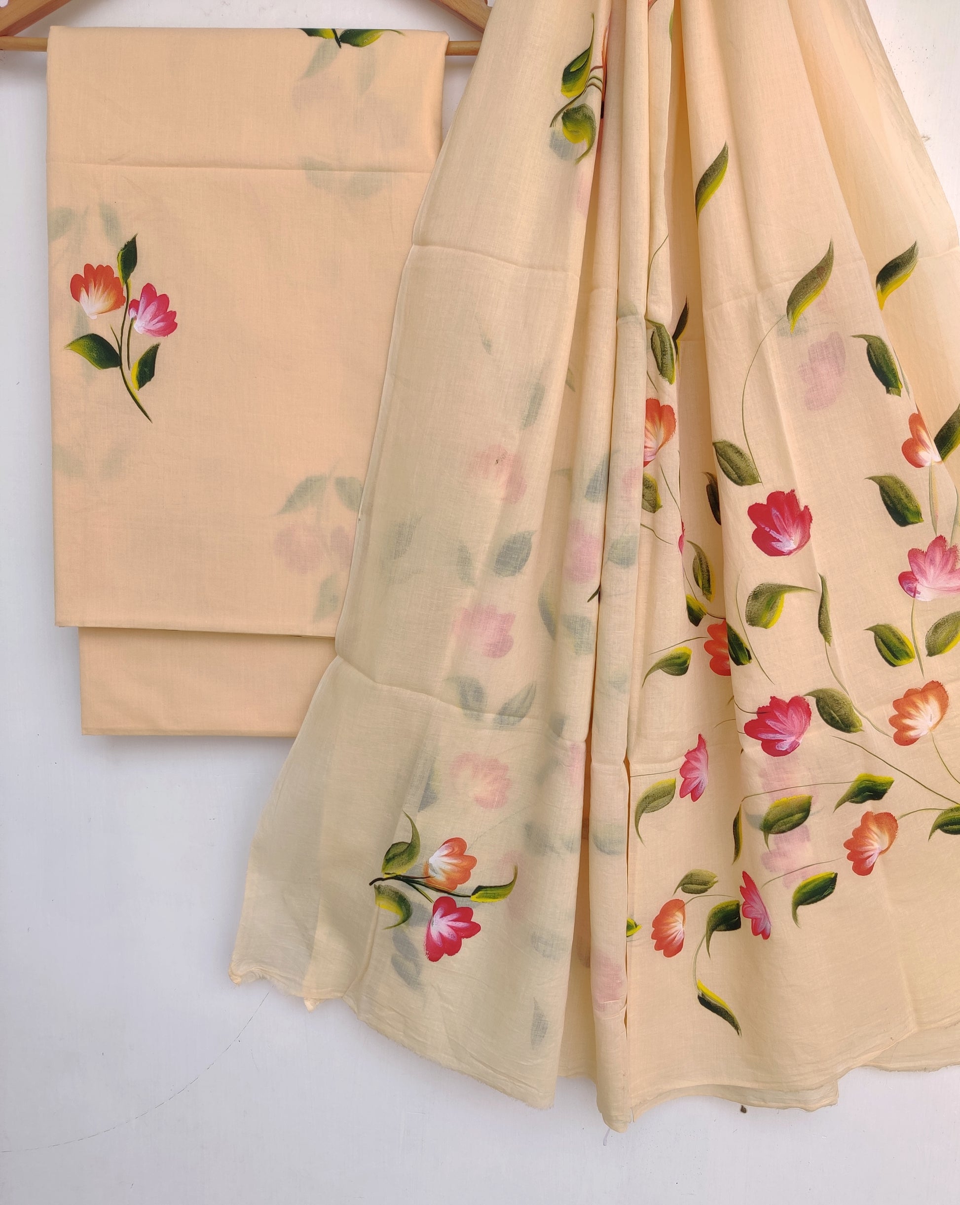 HAND PAINT Cotton Suit with Mulmul dupatta
