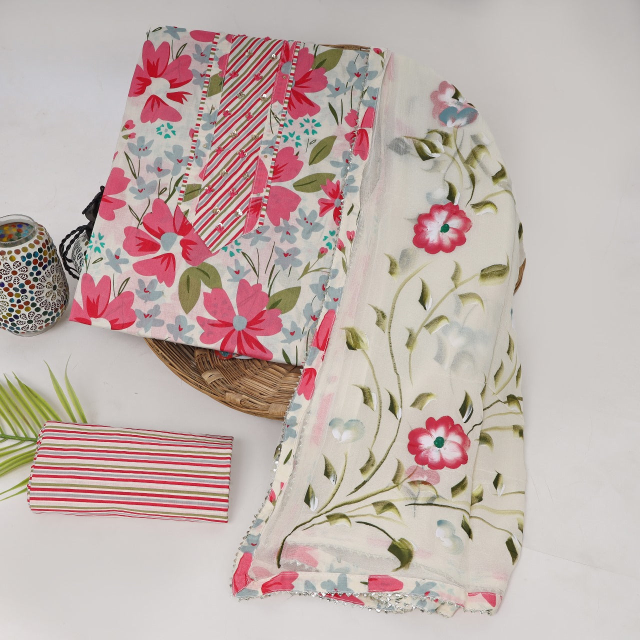 Cotton Printed Neck Work Suits with Chiffon dupatta8