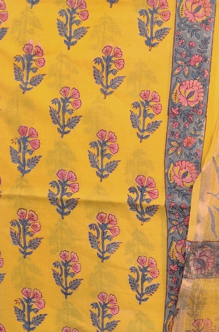 Hand Block Printed Cotton Suit with Cotton Kota Doria dupatta1