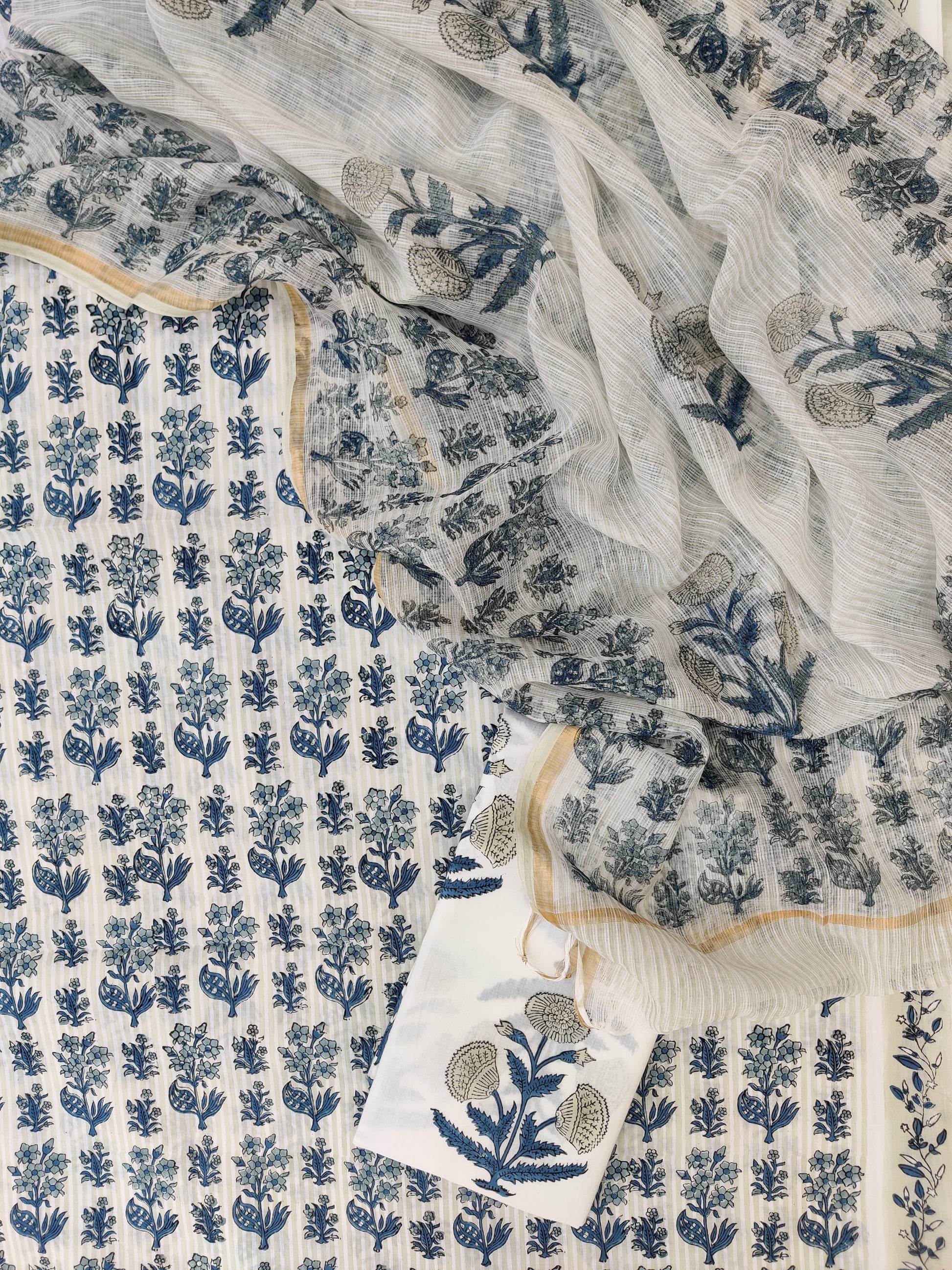 Hand Block Printed Cotton Suit with Cotton Kota Doria dupatta