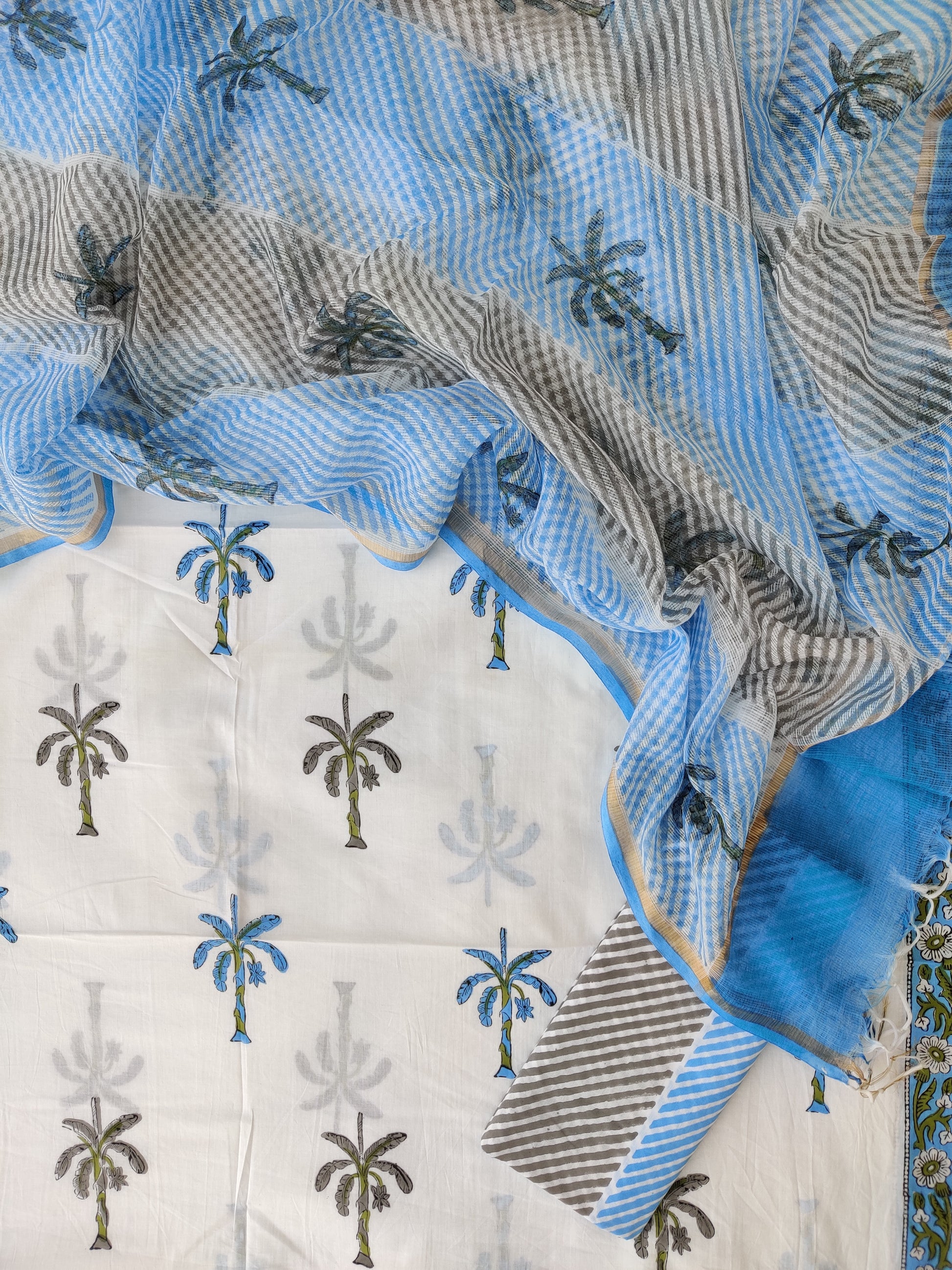Hand Block Printed Cotton Suit with Cotton Kota Doria dupatta3
