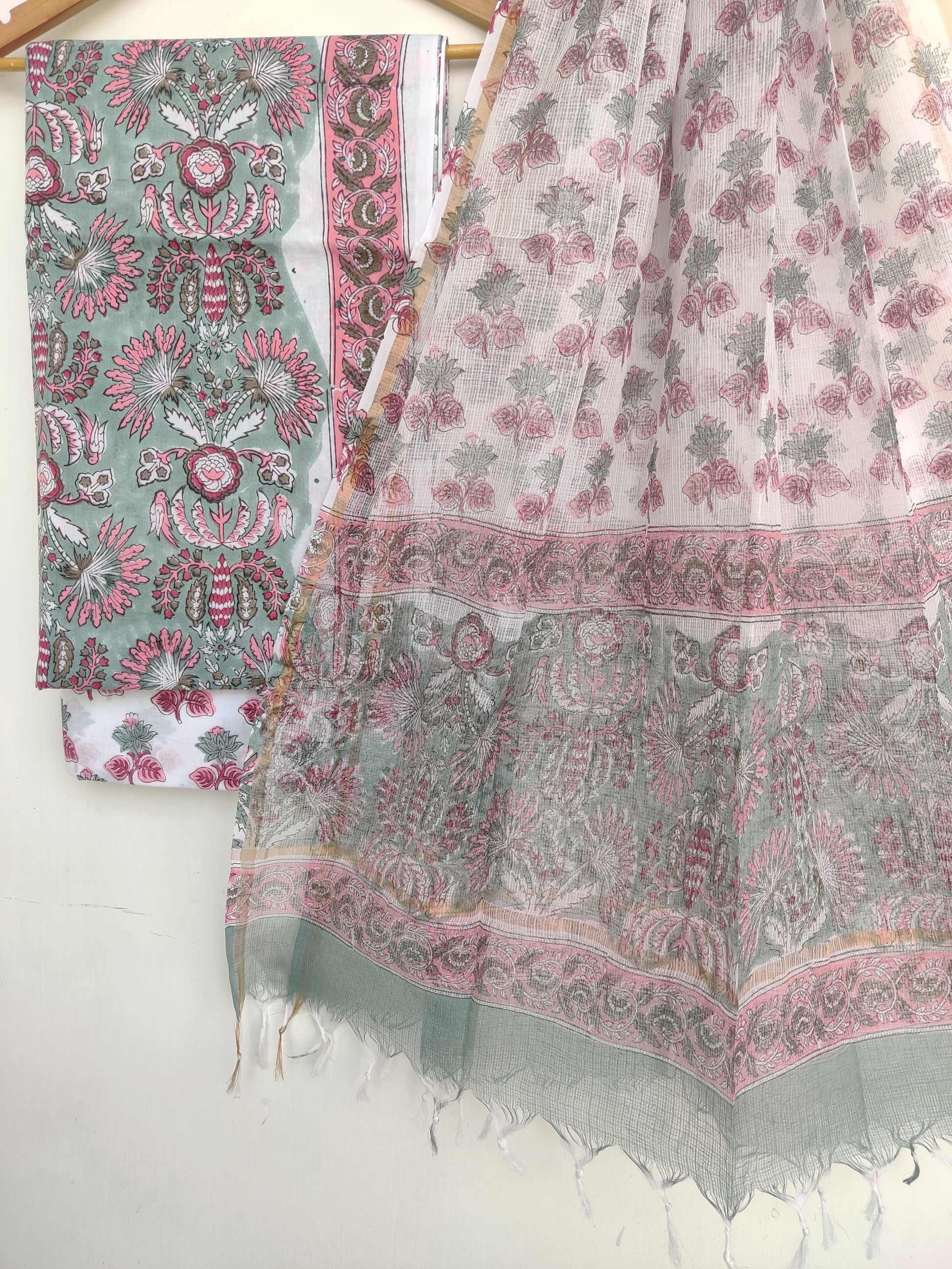 Hand Block Printed Cotton Suit with Cotton Kota Doria dupatta