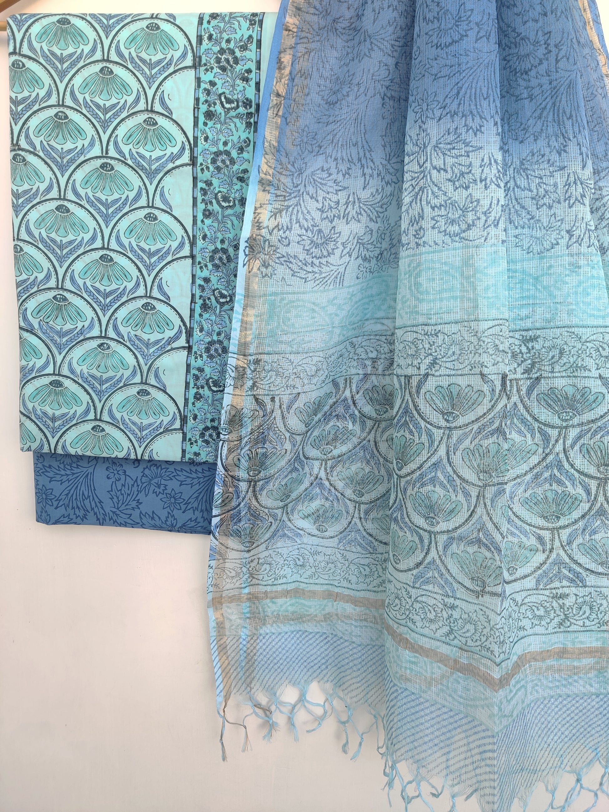 Hand Block Printed Cotton Suit with Cotton Kota Doria dupatta