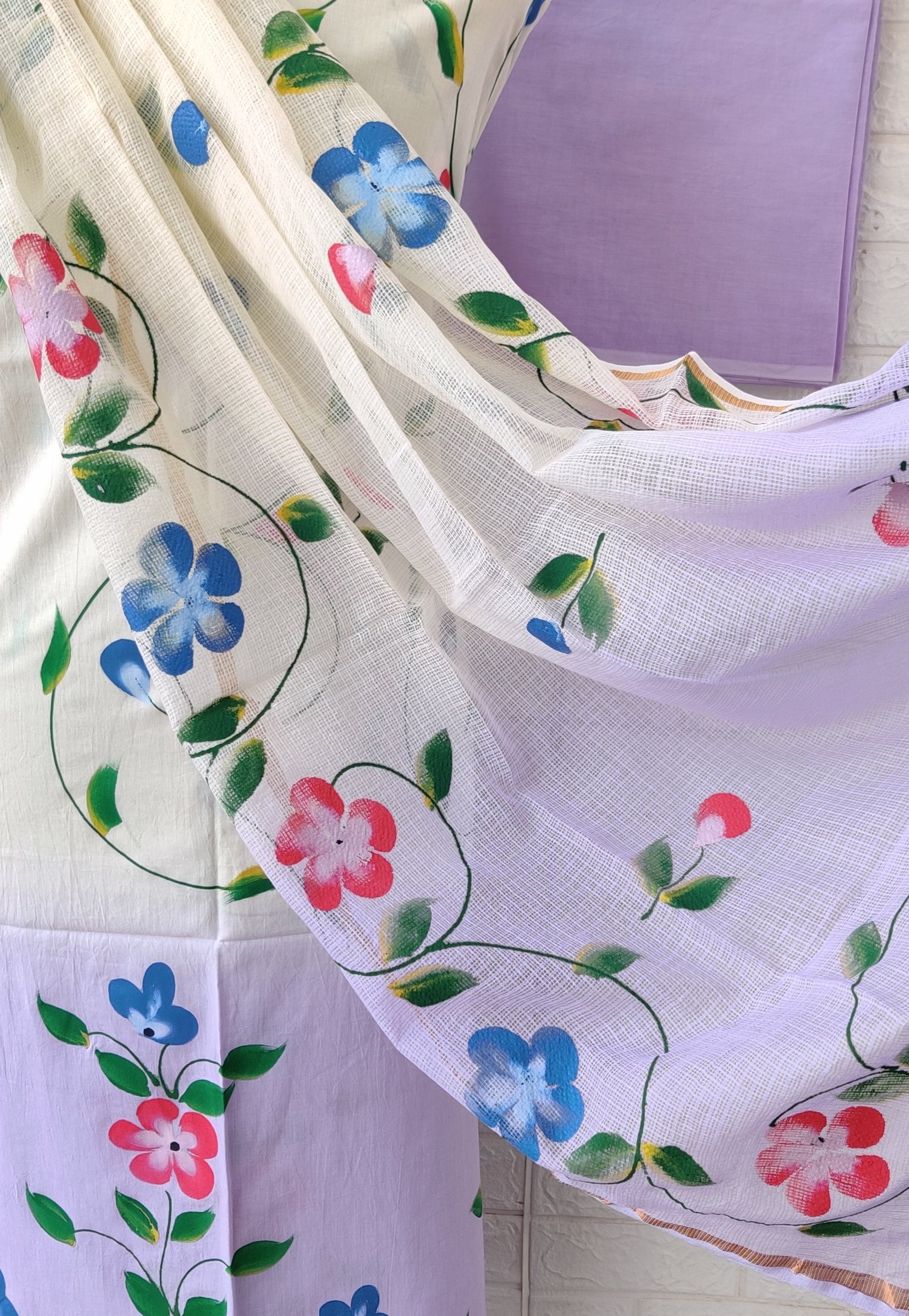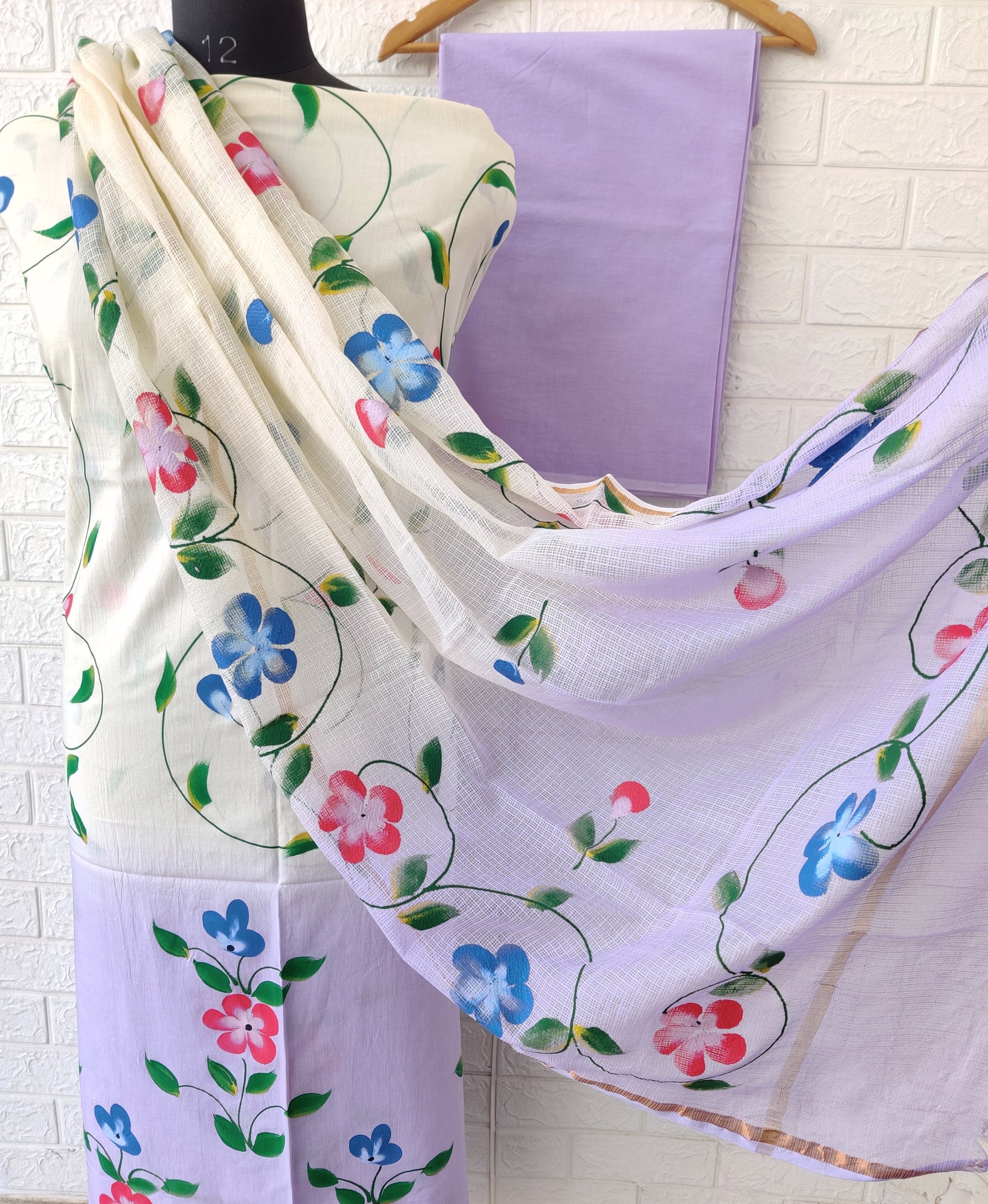 Hand Painted Cotton Suit with Cotton Kota Doria dupatta