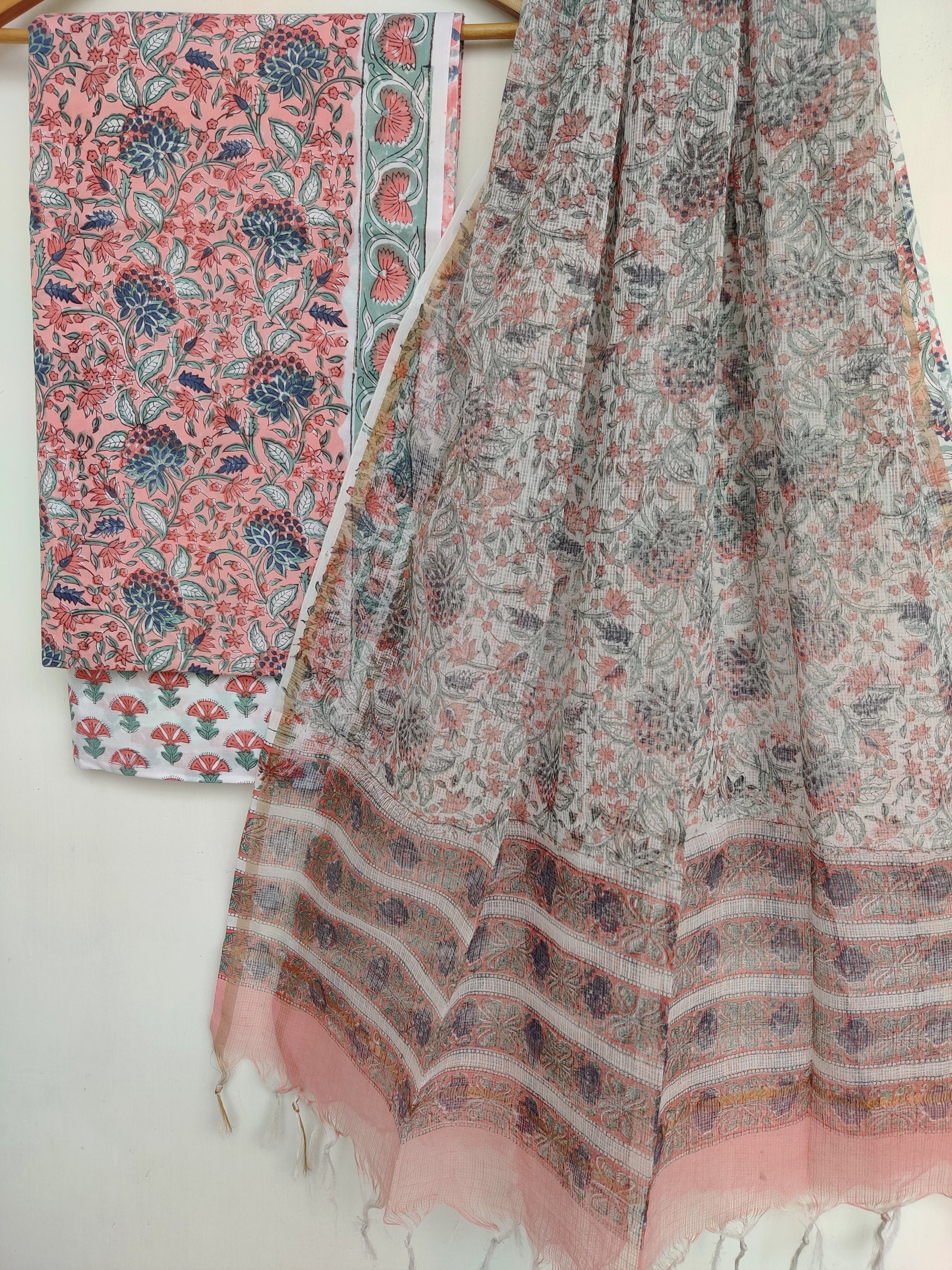 Hand Block Printed Cotton Suit with Cotton Kota Doria dupatta9
