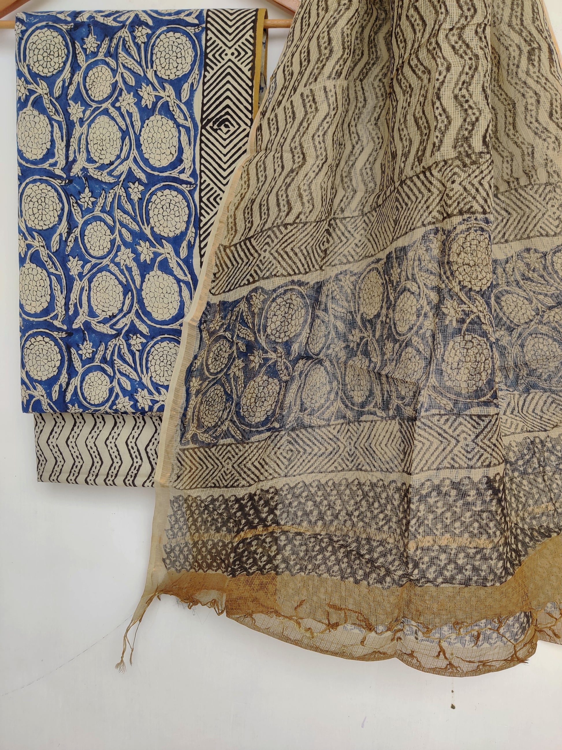 (KALAMKARI) Hand Block Printed Cotton Suit with Cotton Kota Doria dupattaa