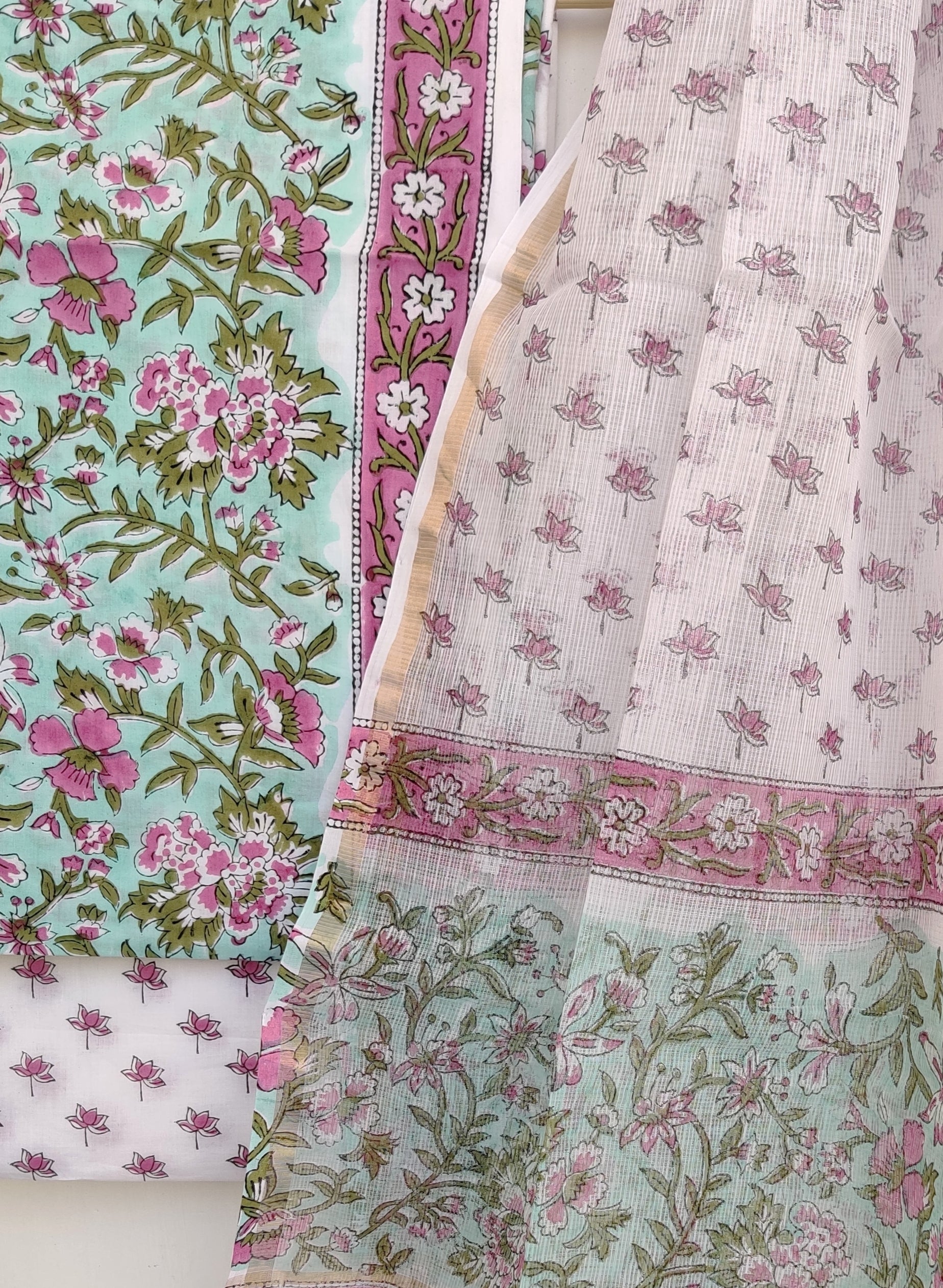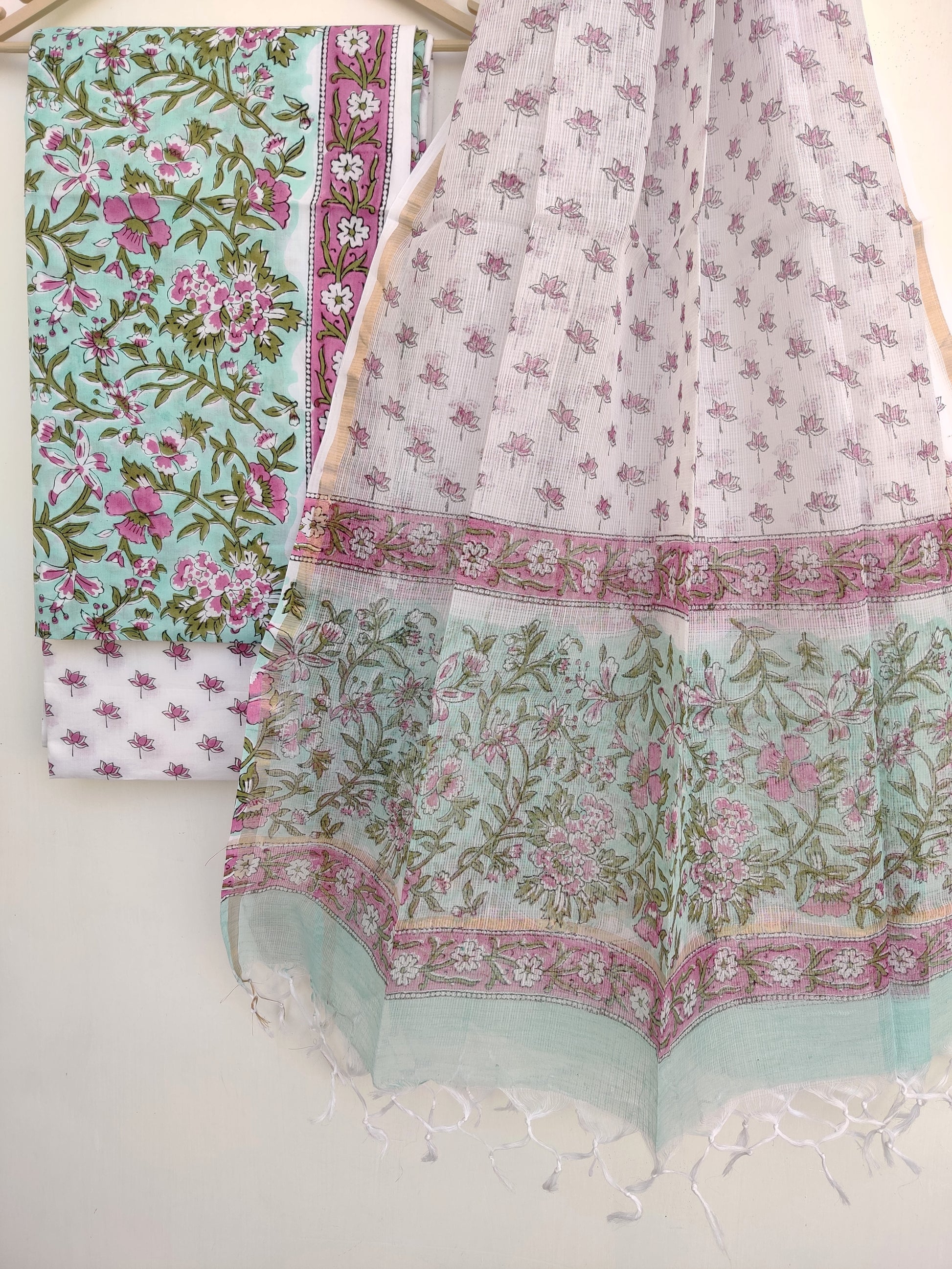 Hand Block Printed Cotton Suit with Cotton Kota Doria dupattaa