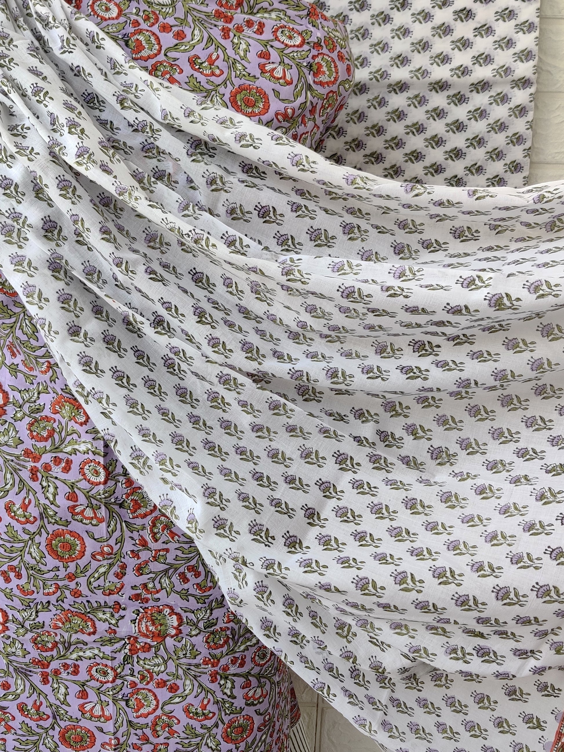Hand Block Printed Cotton Suit With Mulmul Cotton Dupatta