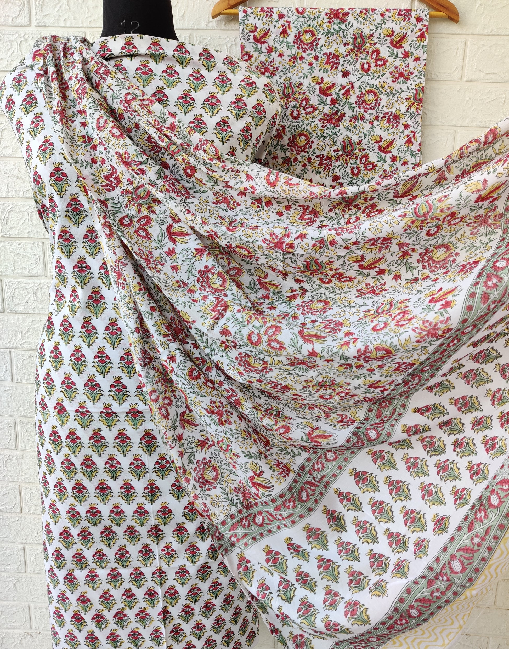 Hand Block Printed Cotton Suit With Mulmul Cottonn Dupatta