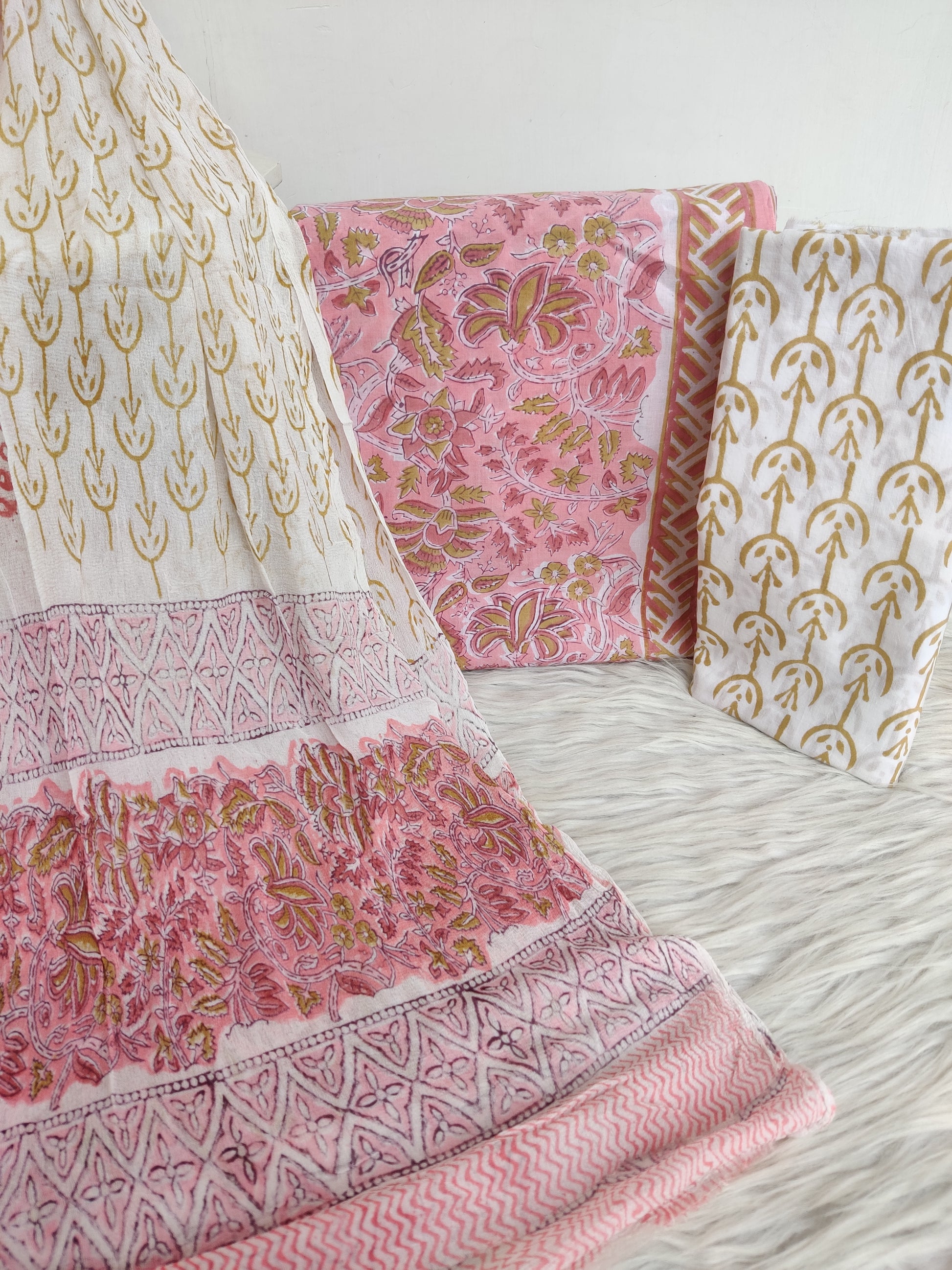 Hand Block Printed Cotton Suit with Pure Chiffon dupatta