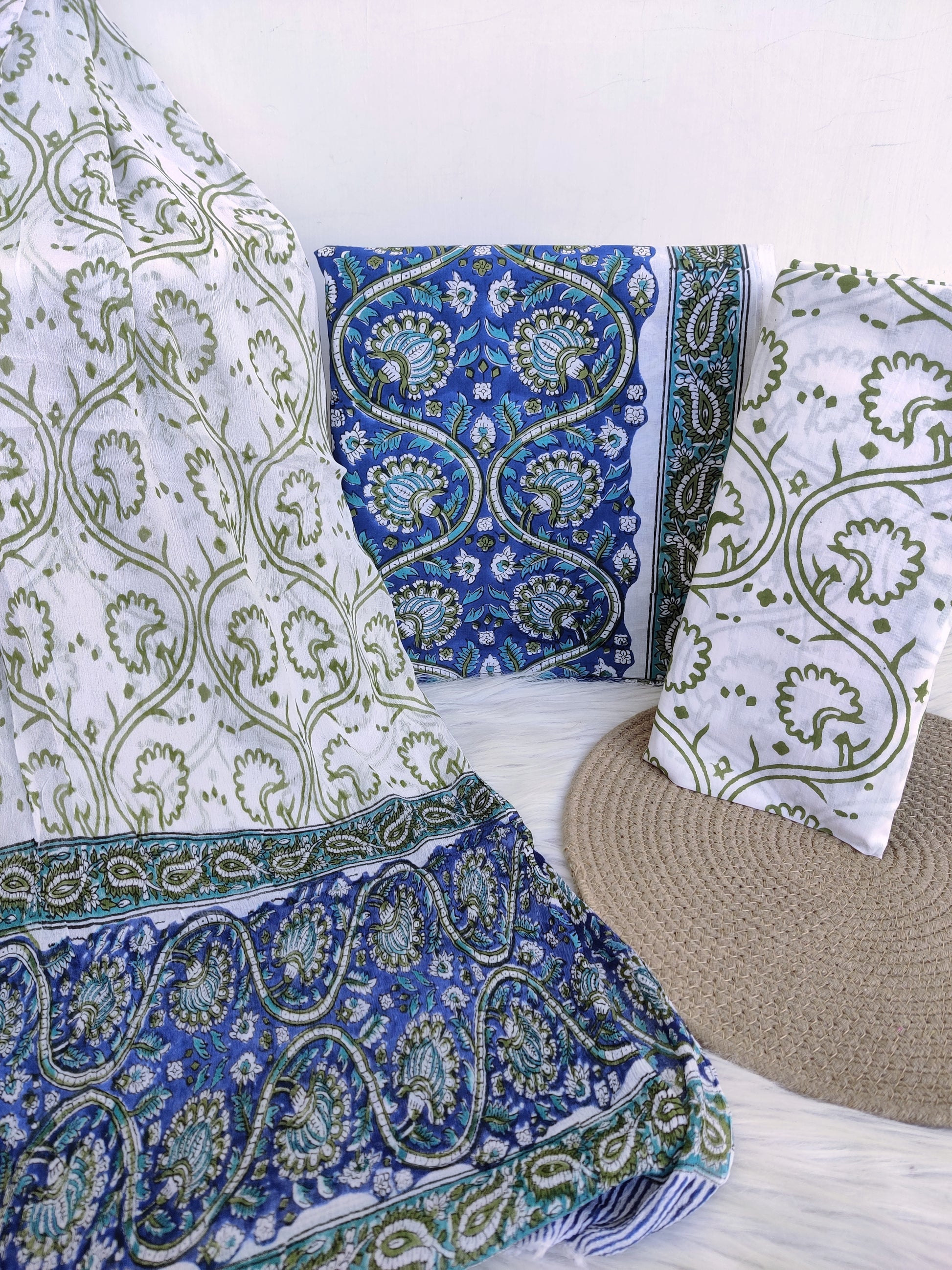 HAND BLOCK PRINTED COTTON SUIT WITH PURE CHIFFON DUPATTA