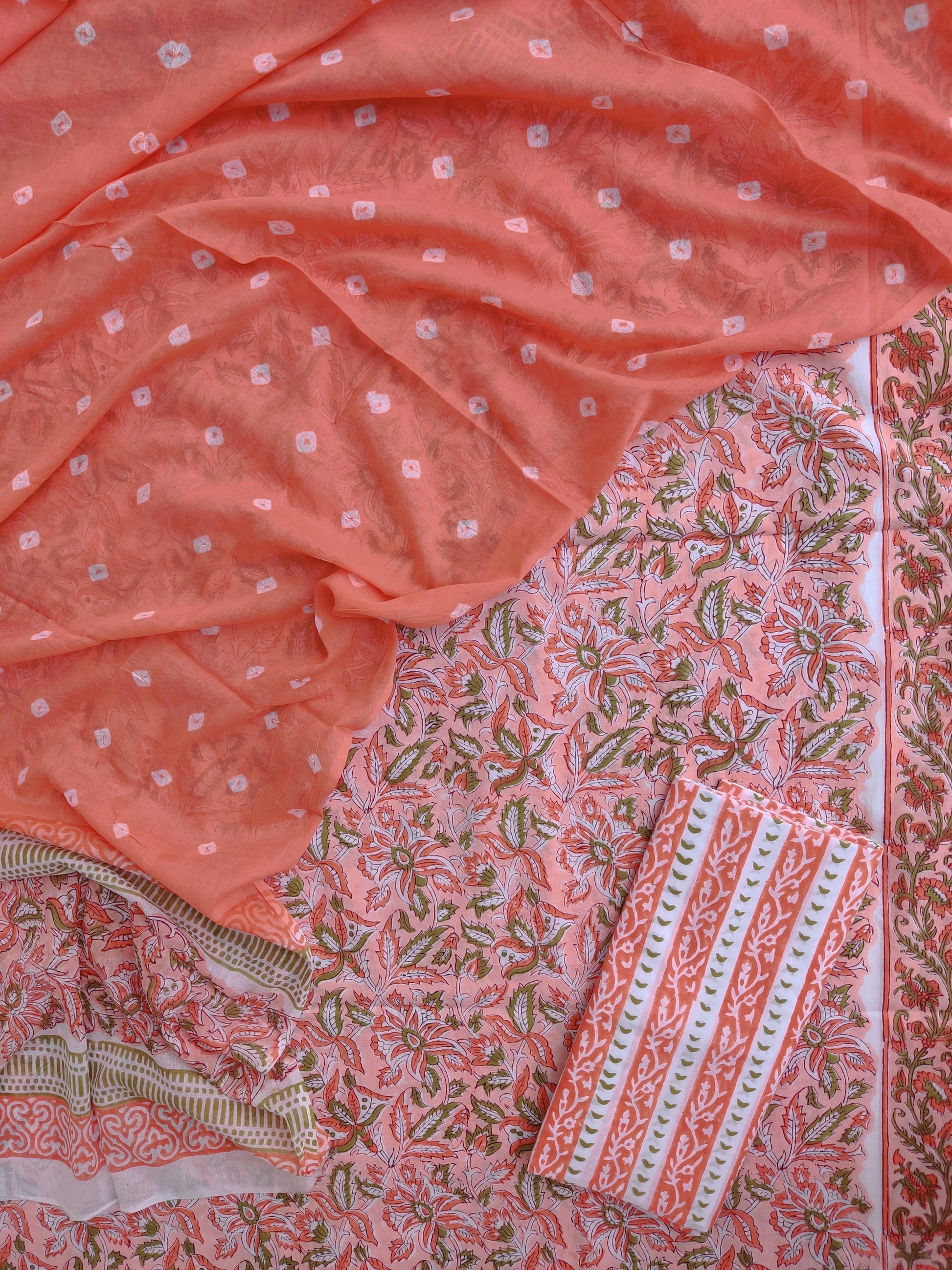 Hand Block Printed Cotton Suits with Mulmul Bandhej Dupatta