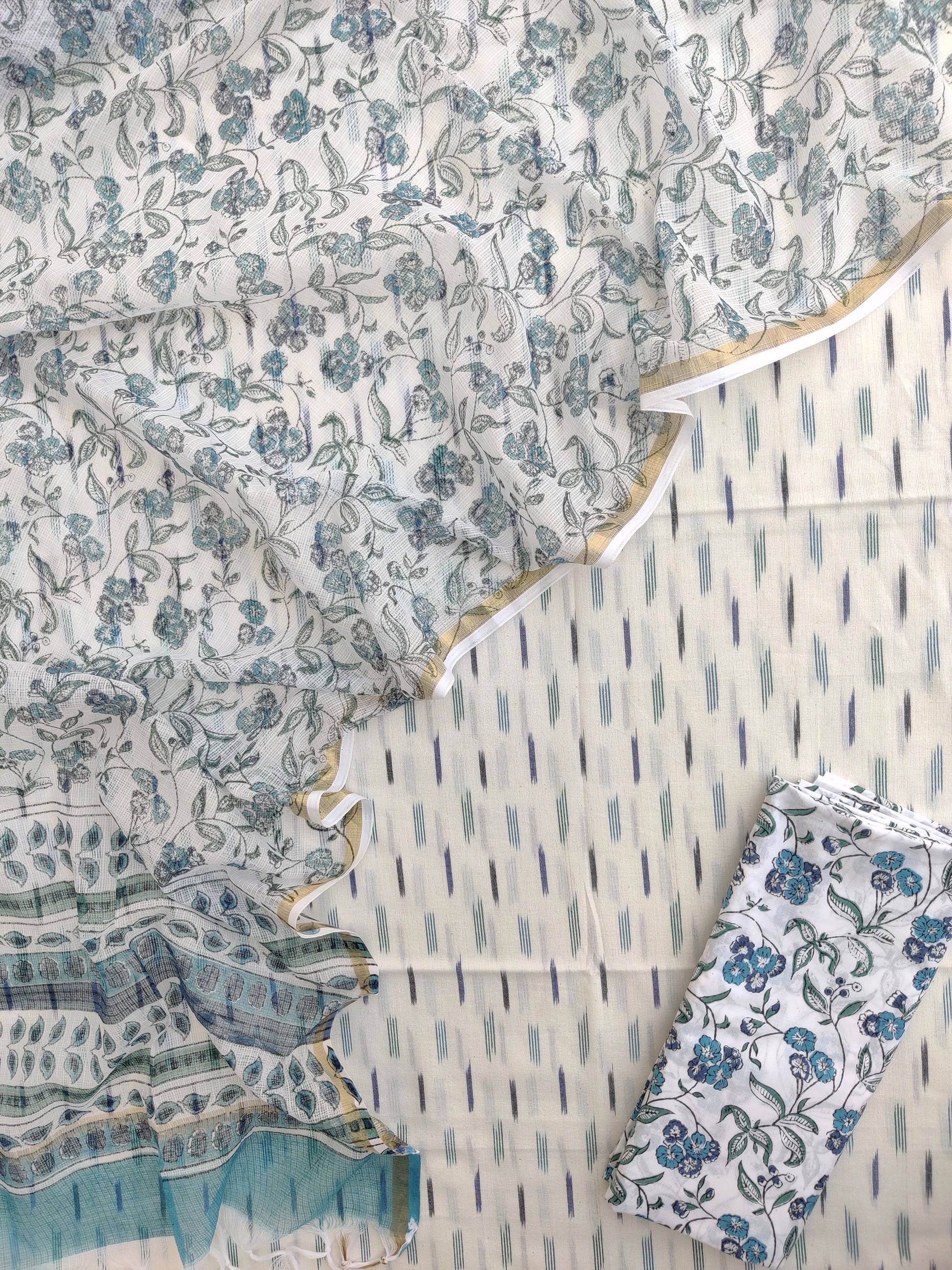 Handloom Weave Ikat Suit with Kota Doria Dupatta