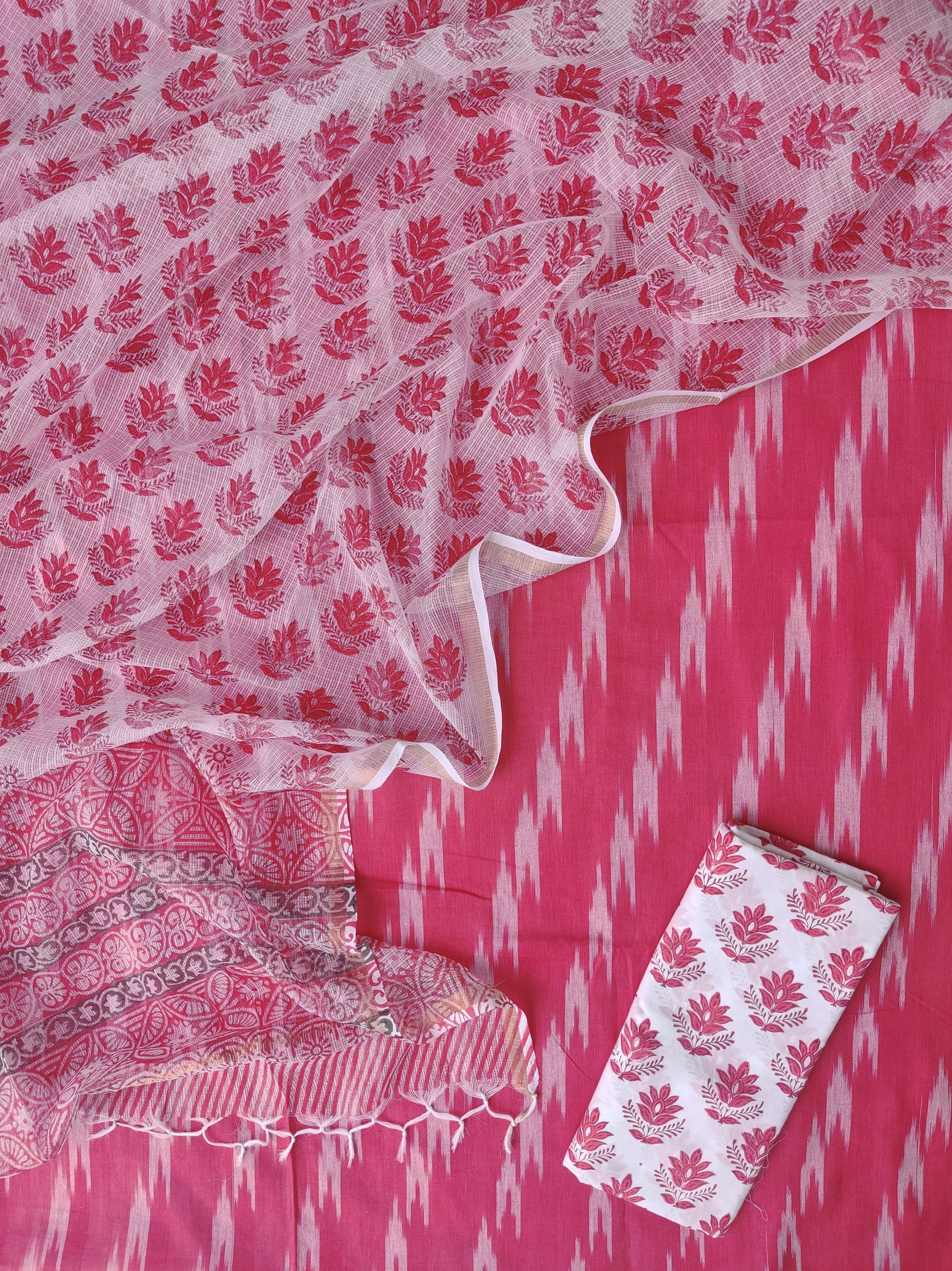 Handloom Weave Ikat Suit with Kota Doria Dupatta