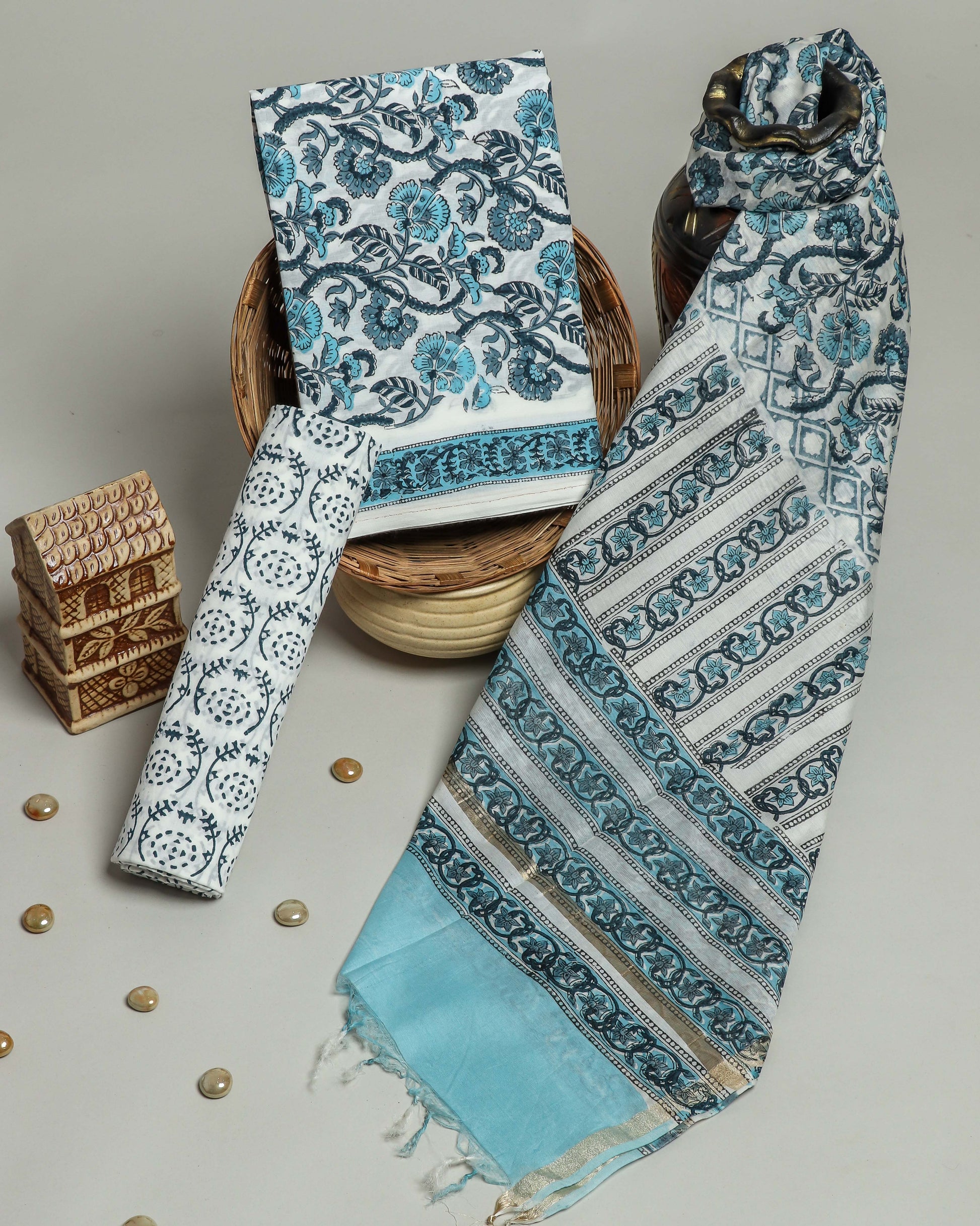 Hand Block Printed Cotton Suit with Chanderi Dupatta