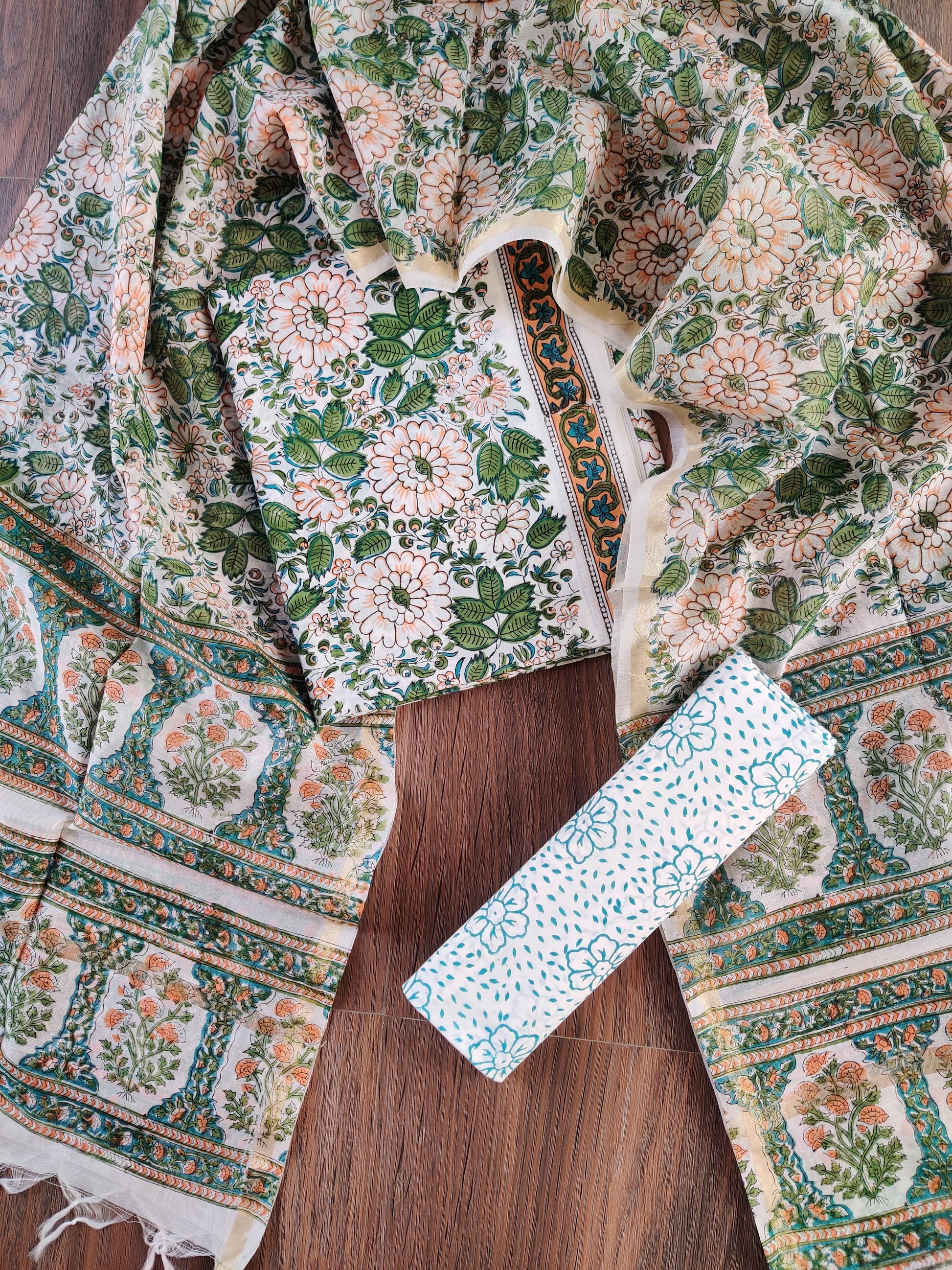 Hand Block Printed Cotton Suit with Chanderi Dupatta