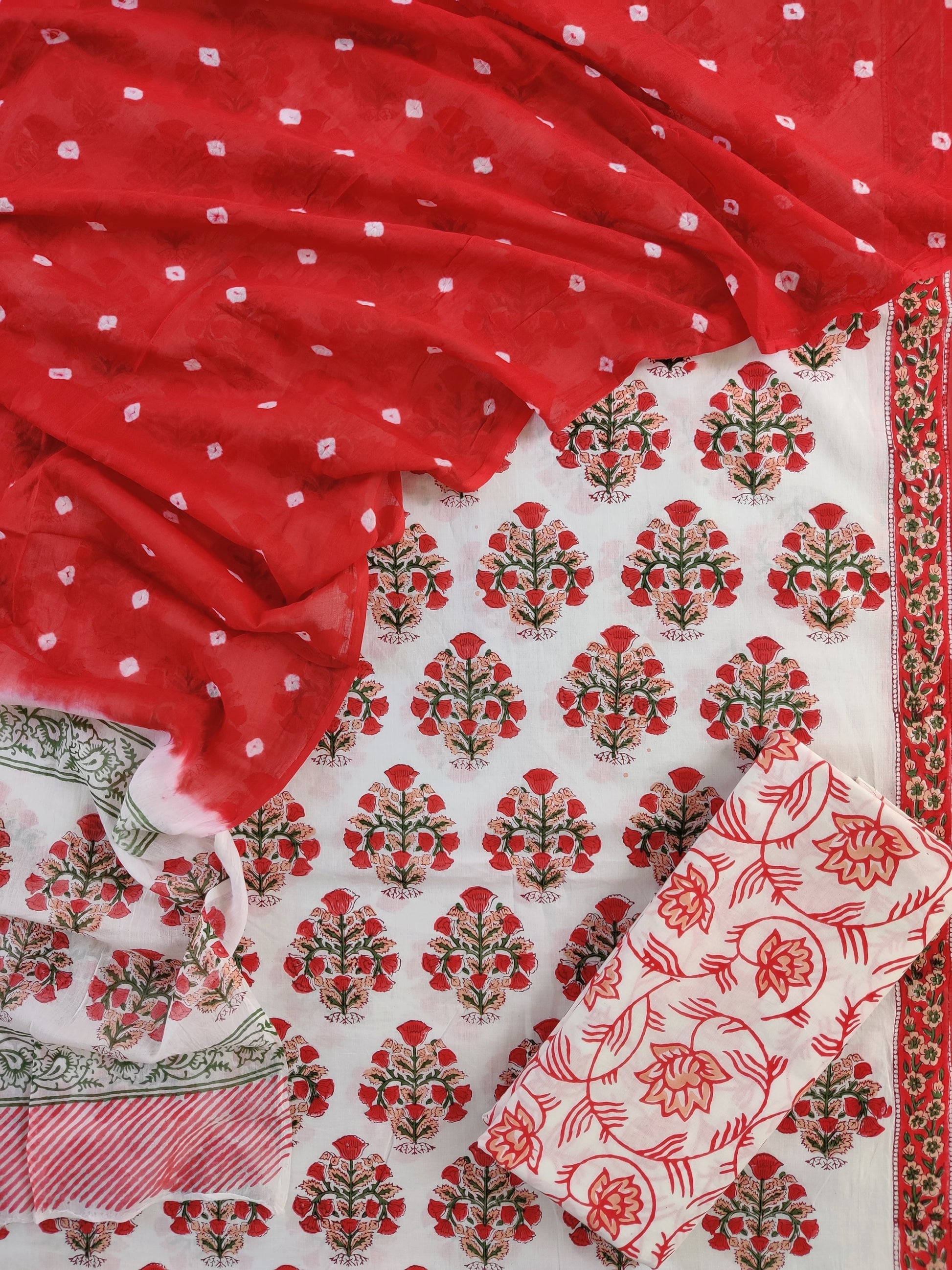Hand Block Printed Cotton Suits with Mulmul Bandhej Dupatta