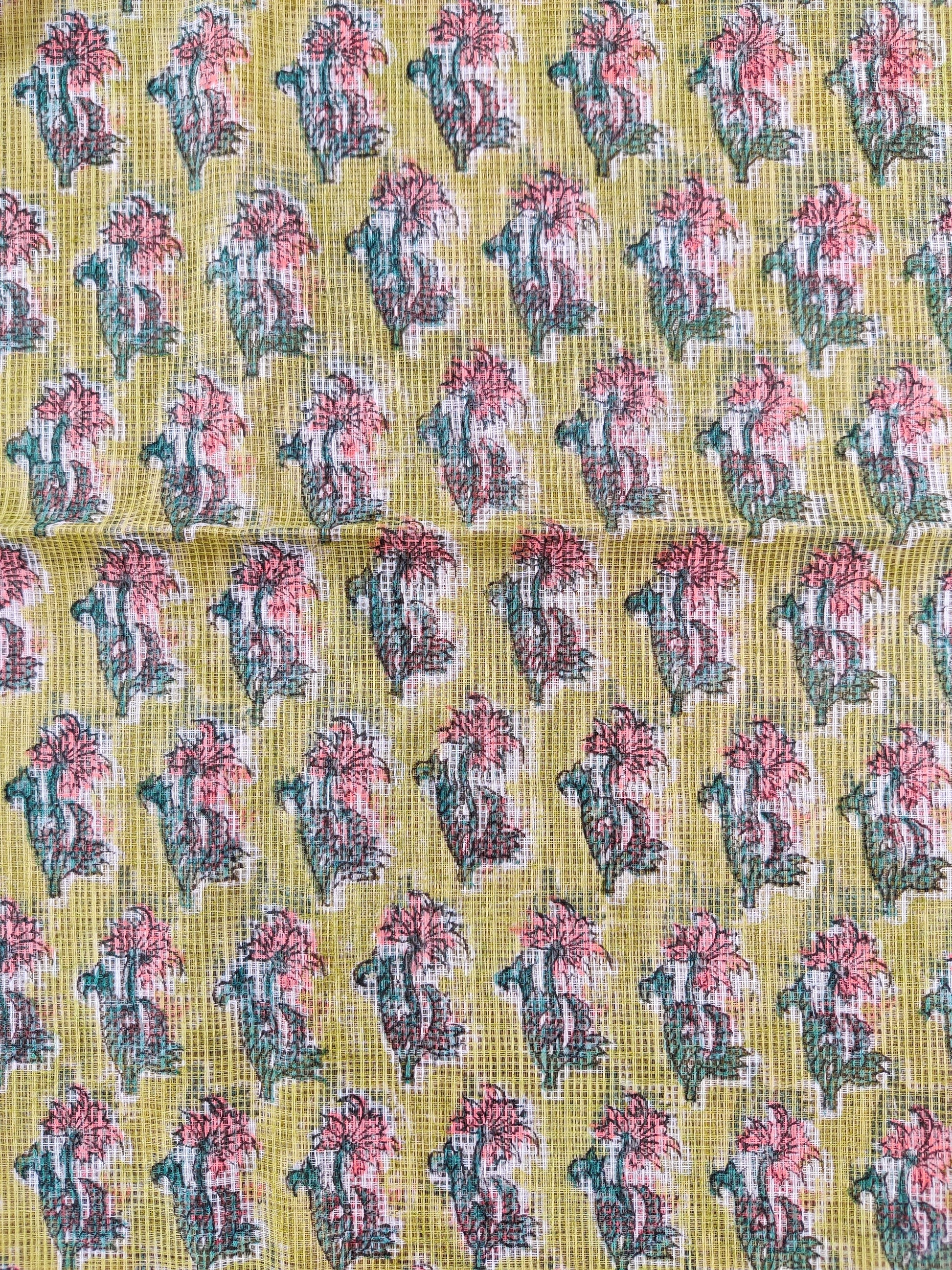 Kota Doria is the name of a light woven fabric made of tiny woven squares (khat) which is still handwoven on a traditional pit loom in Kaithoon near Kota in Rajasthan and in some of the surrounding villages. Kota Doriya Sarees are made of pure cotton and silk and have square-like patterns known as chats on them. They are very fine weaves and weigh very little.