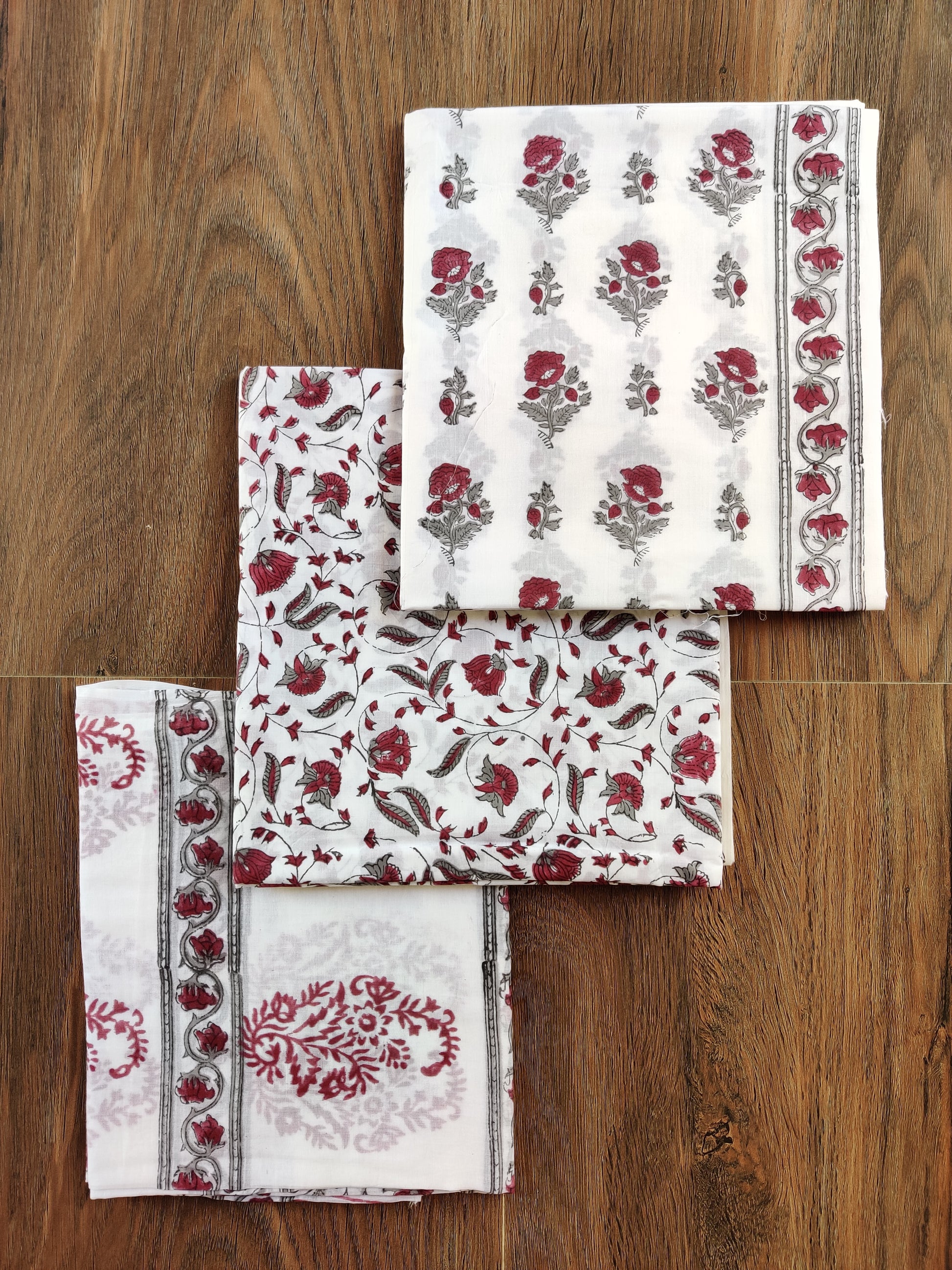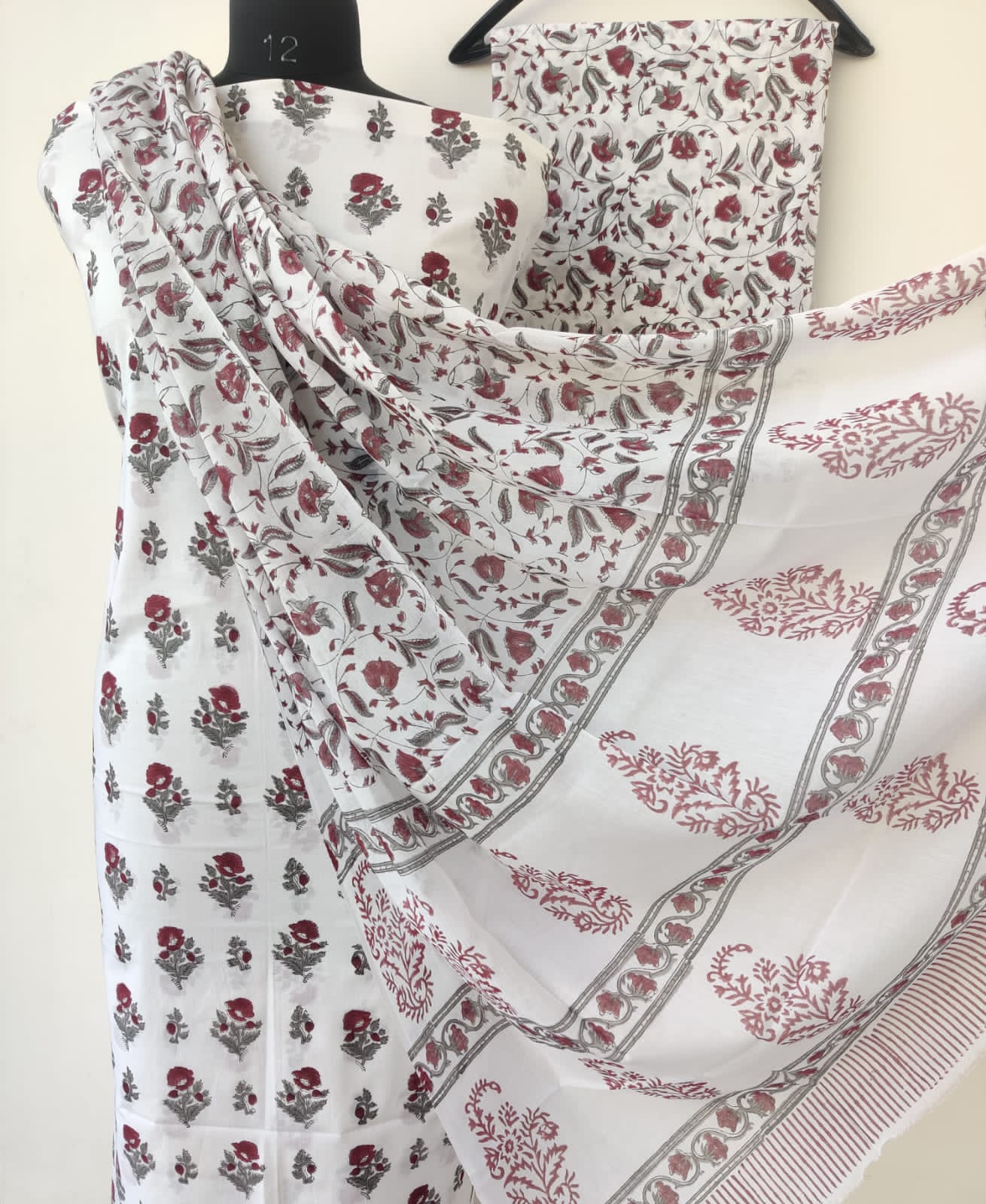 Hand Block Printed Cotton Suit With Mulmul Cotton Dupatta