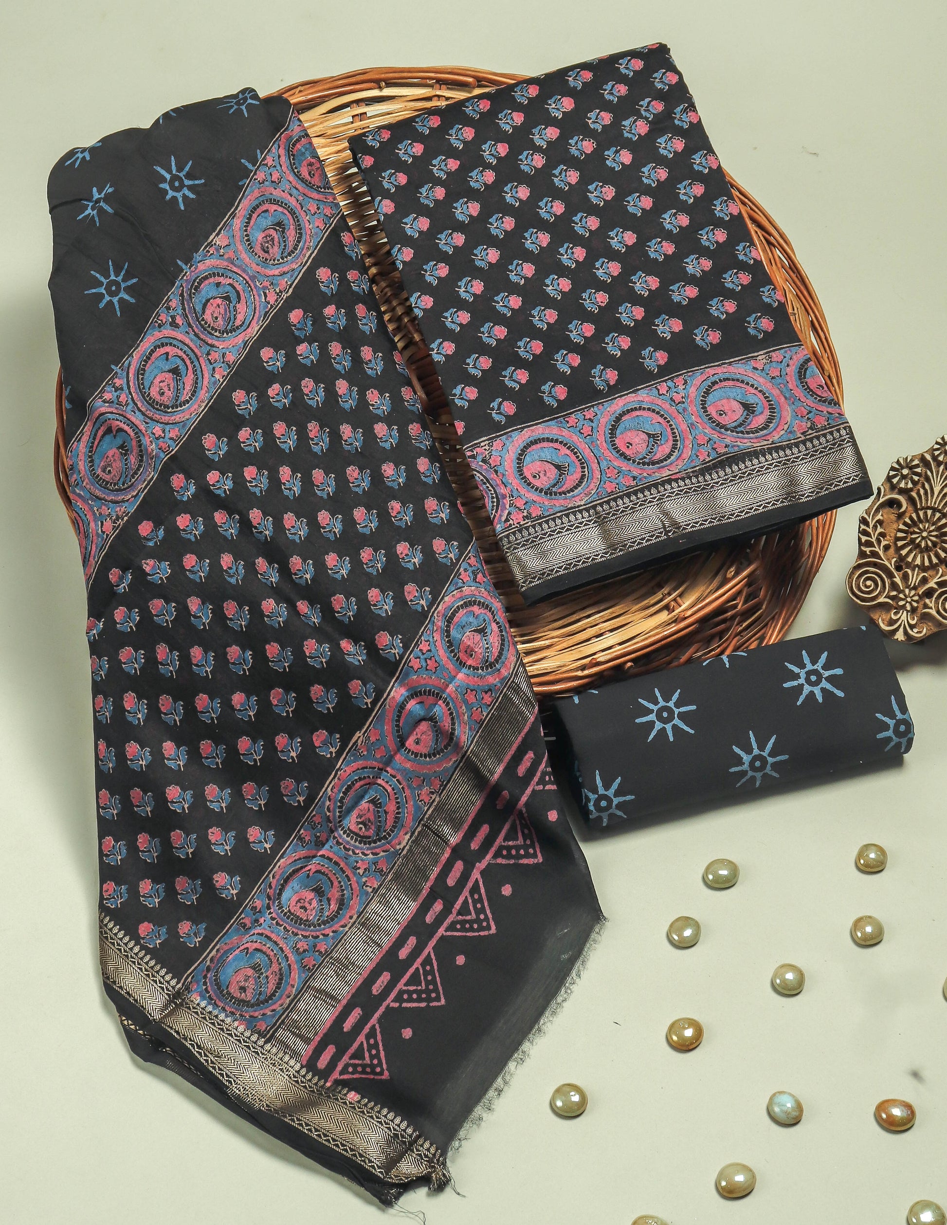 HAND BLOCK PRINTED MAHESHWARI SILK SUIT WITH MAHESHWARI SILK DUPATTA