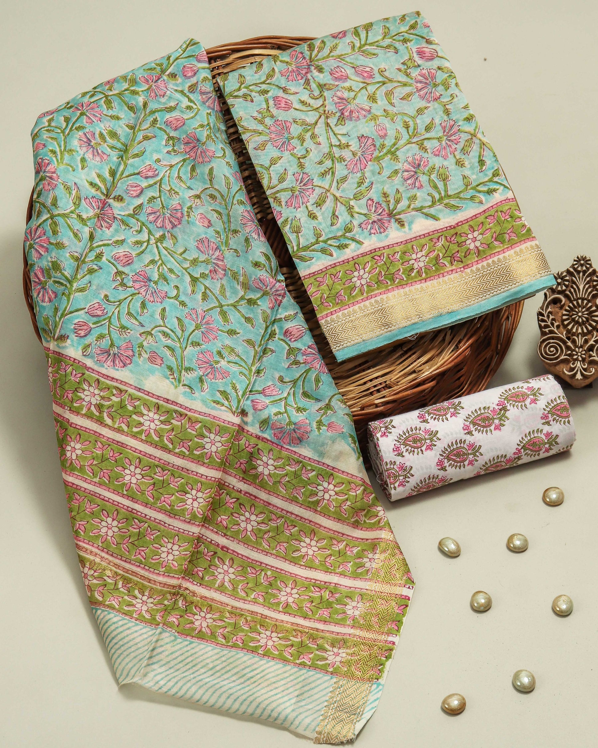 HAND BLOCK Printed Maheshwari Silk Suit with Maheshwari Silk Dupatta